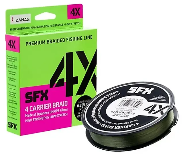 Sufix® SFX 4X er en multifilament fiskeline laget av 100% japanske UHMPE fibre. Dette gir linen en glatt overflate som igjen gir deg lange kast takket være lite friksjon i stangringene når linen fyker ut.