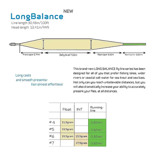 Denne splitter nye LONG BALANCE fluesnøreserien er designet for alle dere som foretrekker fiskevann, bredere elver eller kystsaltvann for sjøørret og havabbor. Ikke bare kan du nå utrolige avstander, men du vil også dramatisk øke din evne til å presentere fluene dine nøyaktig, på alle avstander.