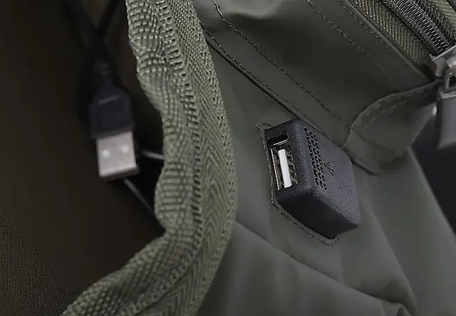 Leveres med et støpt lokk, med forhøyede kanter, for å forhindre at gjenstander sklir av. Bagen har en integrert, vanntett, gummibelagt USB-ladekontakt på høyre side av hovedrommet, slik at en powerbank trygt kan oppbevares inne i vesken.