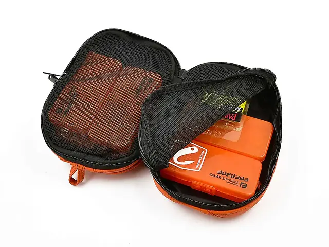 Vi bruker den store/svarte til t-skjorter, sokker og undertøy. Medium/burgunder med ledermateriale, bakside og 10/12 fot tips i alle synkehastigheter. Liten/oransje-boksen brukte vi som en stilig toalettmappe, eller vi har pakket den full av esker med kroker og mikrofluer.