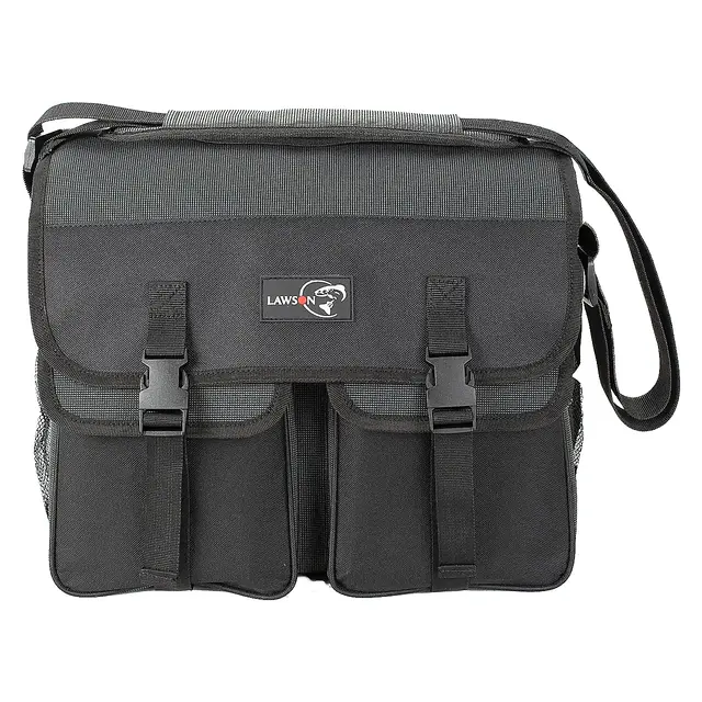 Lawson Fiskeveske S er en funksjonell og moderne utstyrsbagger i moderne design med 5 rom og fiskepose. Stoffet er i slitesterkt 600D Polyester materiale med PVC coating som hindrer vann-gjennomtrenging.