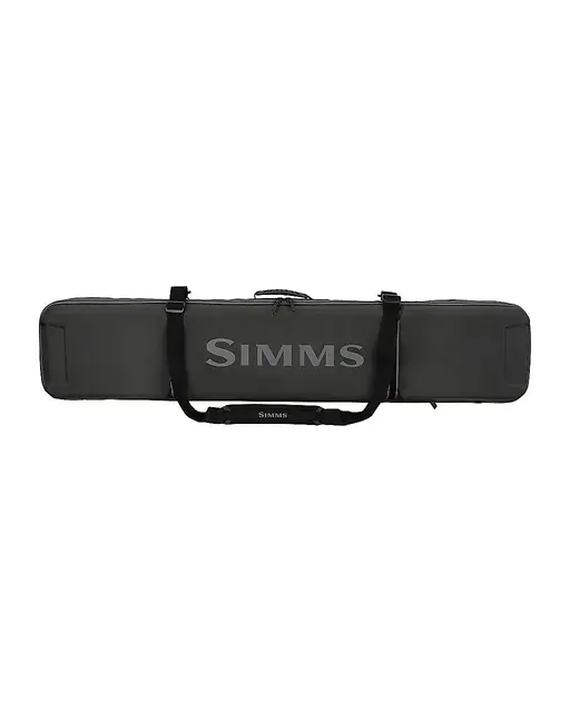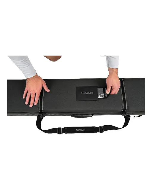 Simms GTS Spey Vault Carbon stangtube. Knus og værbestandig støpt veske for å samle og beskytte stenger, sneller og annet utstyr mens du er på farten. Svært slitesterk og knusningsbestandig kompresjonsstøpt ballistisk nylon med 200D polyesterfôr Clamshell glidelåsåpning til hovedrommet, frontlomme med glidelås og nettinglommer i lokket Holder opptil fire 14″ 4-delte stenger og 4 sneller/sneller med innvendige stropper og skillelinjer Forsterkede daisy-kjeder for surring til annen bagasje og utstyr Avtakbar polstret skulderstropp Hovedskall: 1680D polyester ballistisk med DWR-behandling Fôr: 200D polyester